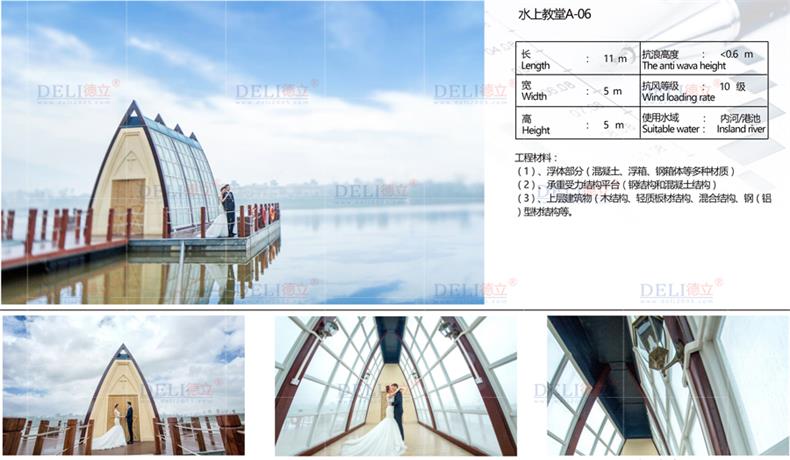 水上建筑主要是指:水上房屋、水上酒店、水上度假屋、水上教堂、水上餐廳和其它各種結構材質的水上浮動