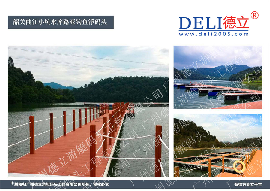路亞釣魚浮碼頭位于廣東省韶關(guān)市,韶關(guān)曲江小坑水庫路亞釣魚浮碼頭項(xiàng)目由廣州德立游艇碼頭工程有限公司負(fù)責(zé)開發(fā),設(shè)計(jì),建造。該項(xiàng)目初期浮碼頭面積為690㎡,考慮到回旋水域,碼頭占用水域、建設(shè)規(guī)模等因素,我們布置了37個(gè)泊位,其中釣魚艇泊位30個(gè),摩托艇泊位4個(gè),小型游艇泊位3個(gè)。區(qū)別于傳統(tǒng)的浮碼頭,該項(xiàng)目浮碼頭采用了更為先進(jìn)的輕型材料以及絞盤拋錨定位方式,碼頭干舷相對較低,親水性更好,造價(jià)更低,是可以更好地適應(yīng)高水位落差的新型浮碼頭。