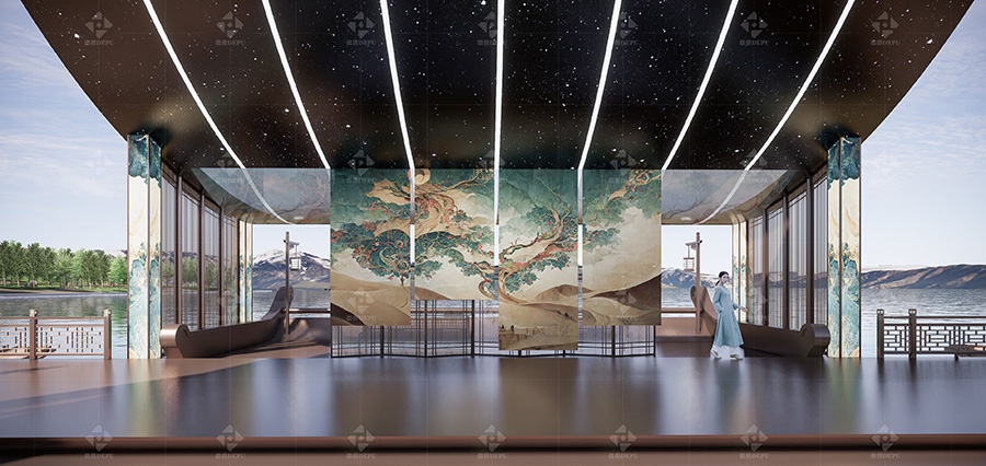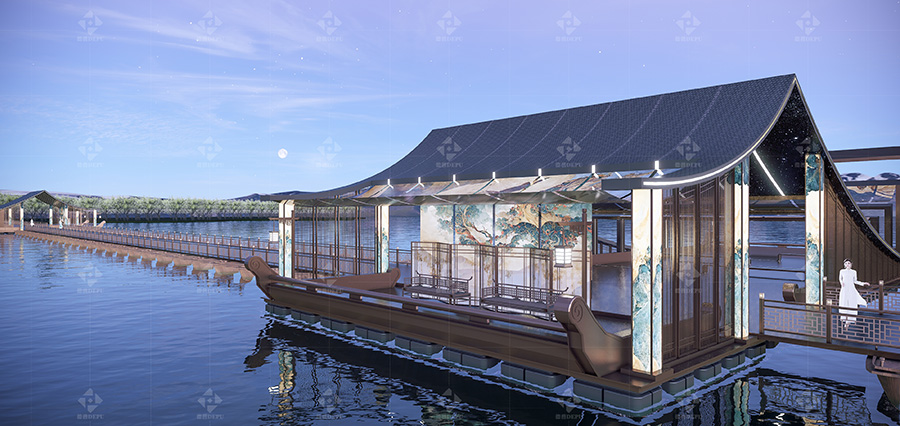 在這樣的畫面中,水上建筑與自然融為一體,展現(xiàn)出一種深深的意境和古典的美感。每一個細(xì)節(jié)都透露著中國傳統(tǒng)文化的魅力,讓人仿佛置身于一個充滿詩情畫意的世界中。