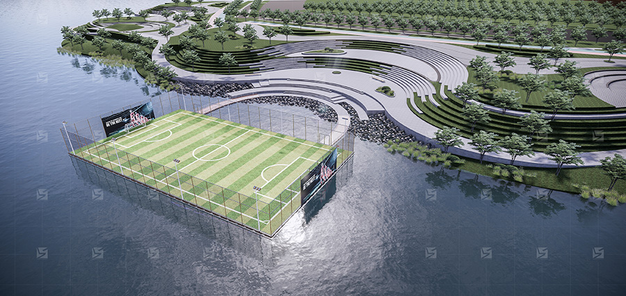 水上漂浮足球場(chǎng)的設(shè)計(jì)通??紤]了場(chǎng)地的穩(wěn)定性和安全性。它們采用了專門(mén)設(shè)計(jì)的材料,特殊的浮力材料,以確保場(chǎng)地在水面上穩(wěn)固漂浮。