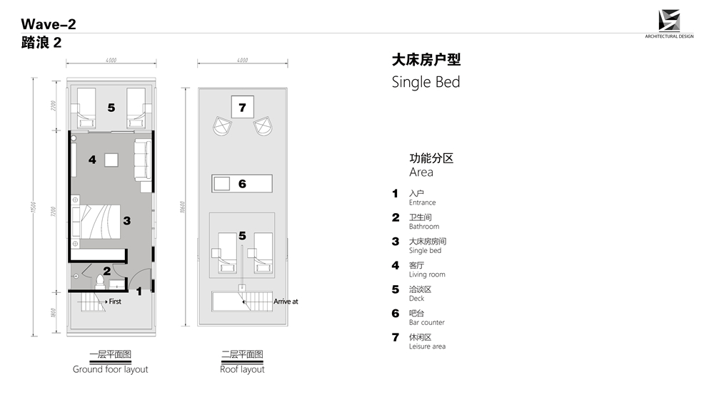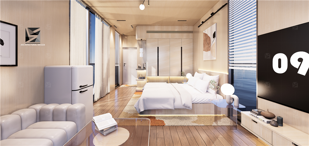 配備了客廳、衛(wèi)生間、大床房、戶外露臺(tái)等功能空間。
