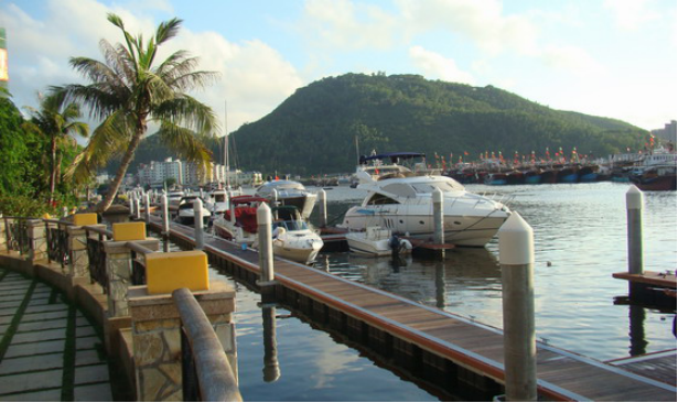 三亞鴻洲國(guó)際游艇會(huì)碼頭工程建設(shè)內(nèi)容主要包括港池和航道疏浚開挖量約為13.9萬(wàn)m3、原堤岸護(hù)堤工程約為650m,鋁合金結(jié)構(gòu)的活動(dòng)引橋6座、港池布置350個(gè)浮碼頭泊位,為梳式“豐”字型浮體結(jié)構(gòu),是目前海南動(dòng)工的最大游艇碼頭項(xiàng)目。