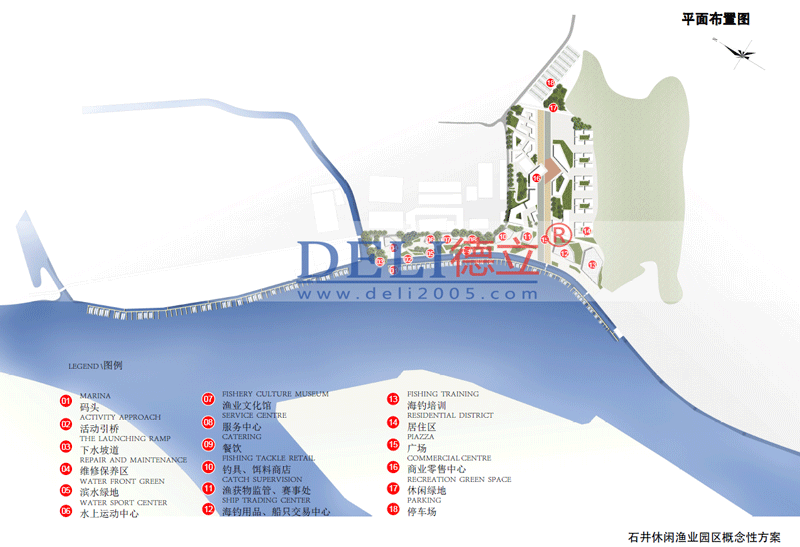 由碼頭、綠地和各種建筑組成。其中有水上運動中心、漁業(yè)文化館、商業(yè)零售中心、船