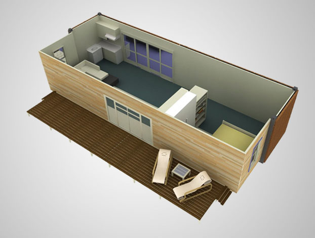 >> 使用三個全新的40英尺海運(yùn)集裝箱改裝而成;