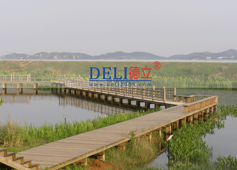 珠海橫琴浮橋長120米,項目從設(shè)計到施工,12天內(nèi)完成,創(chuàng)下行業(yè)內(nèi)新 速度,德立這一壯舉是堅持自主創(chuàng)新、自主知識產(chǎn)權(quán)的獨具風(fēng)格,該橋的設(shè)計主要是采用鋼結(jié)構(gòu)受力件、防腐木板及PE塑料浮箱等材料制作而成,設(shè)計受載300公斤 / 每平方米,最大落差 2.0 米 ,浮橋兩側(cè)設(shè)有水上平臺可供游客觀賞及休息,全面體現(xiàn)了設(shè)計的人性化及完美度。