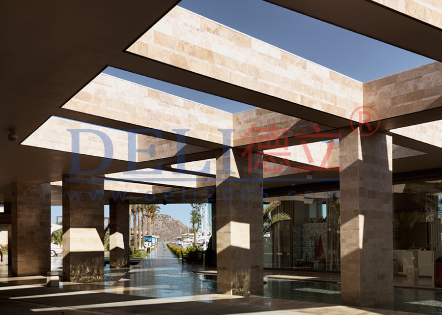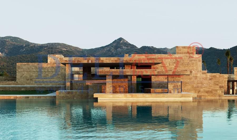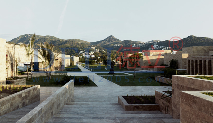 ↑第一階段工程的“島嶼”部分 該方案中的建筑設(shè)計反映了該地區(qū)的特色,由不同的體量的相互組合,以及整齊的網(wǎng)格布局,與土耳其自的然景觀有機融合在一起。項目主要采用了石灰華石,使得復(fù)雜的項目整體具有了統(tǒng)一性。