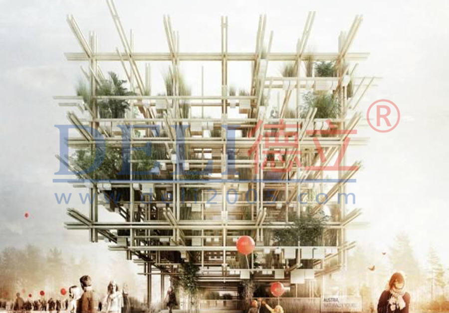奧地利館主要由PENDA事務所設計,木結構中暗藏植物的種植,游客有機會親自栽培種子。