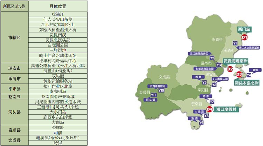“多點(diǎn)結(jié)合”以洞頭諸島、飛云湖景區(qū)、西門島、銅盤山、炎亭和漁寮等風(fēng)景名勝區(qū)域?yàn)榛A(chǔ),為溫州市游艇產(chǎn)業(yè)未來延伸提供南、北兩翼地區(qū)的發(fā)展方向。