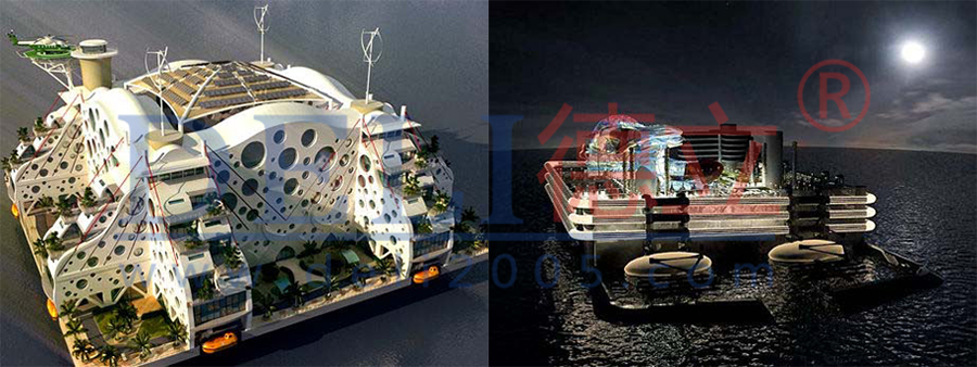 據(jù)美國(guó)《Details》雜志2011年的報(bào)道,全世界首座海上城市也許在7年后就將問(wèn)世了。因成本過(guò)高至今沒(méi)有開(kāi)建。