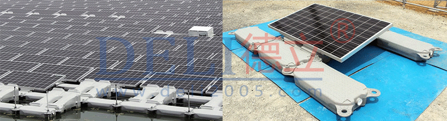太陽(yáng)能電池板和接線盒利用樹(shù)脂制浮臺(tái)設(shè)置在水池上。浮臺(tái)是類似于竹筏的樹(shù)脂制部件,起著地上設(shè)置時(shí)使用的基礎(chǔ)和架臺(tái)的作用。