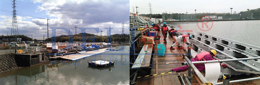 其次,利用浮臺(tái),使太陽(yáng)能電池板和接線盒浮在水池上。要提高這一步驟的效率,有效的方法是,盡可能多地在地面上作業(yè),來(lái)減少船上作業(yè)。