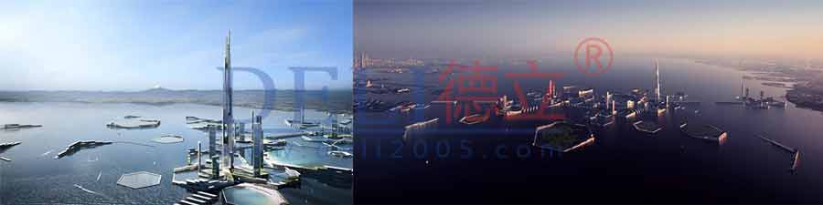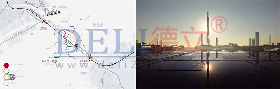 Kohn Pederson Fox 事務(wù)所和 Leslie E. Robertson 聯(lián)合公司共同策劃了東京灣的一座新城市。“未來(lái)東京”想象的是一座可以在2045年適應(yīng)氣候變化的城市。在那個(gè)時(shí)候,海平面上升、地殼運(yùn)動(dòng)頻繁,以及臺(tái)風(fēng)的威脅使大家開(kāi)始關(guān)注海灣地區(qū)低海拔的區(qū)域。設(shè)計(jì)提供了一種發(fā)展策略,增強(qiáng)了海灣地區(qū)對(duì)于這些自然災(zāi)害的預(yù)防能力,其中有一座具有可行性的一公里高的公交導(dǎo)向的居住塔樓。