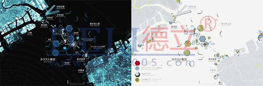隨著近年城市化帶來(lái)的全球人口集中,大多數(shù)人都聚集在了水體的旁邊。“未來(lái)東京”項(xiàng)目參與了海邊超大城市的轉(zhuǎn)型,讓其能對(duì)環(huán)境具有更好的預(yù)應(yīng)力。”未來(lái)東京“延續(xù)了歷史上對(duì)東京灣的興趣,并利用了曾經(jīng)未被使用過(guò)的資源,結(jié)合新陳代謝理論創(chuàng)造了一片人造的土地而且利用了先進(jìn)的技術(shù)。這些基礎(chǔ)部分與高密度垂直發(fā)展的專業(yè)相結(jié)合,發(fā)展出了新的城市超級(jí)建筑類型。