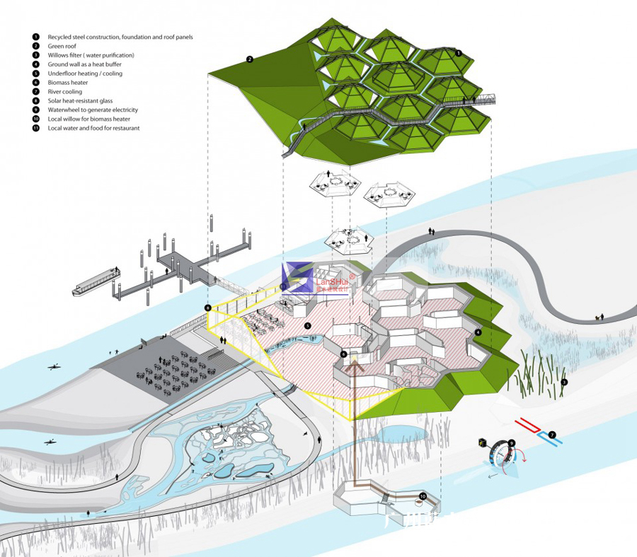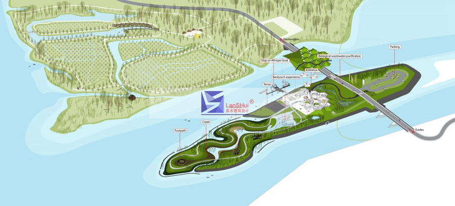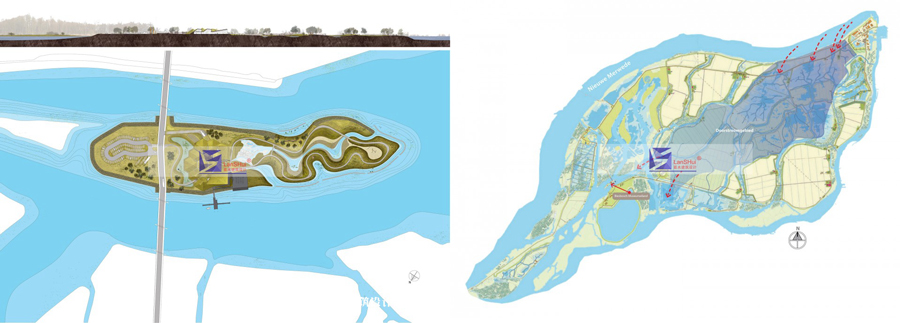 水源安全是Biesbosch Museum Island開發(fā)的主要原因。作為國家水源安全項目的一部分,4450公頃的Noordwaard澤地已經(jīng)變成一塊水源保護區(qū)。Biesbosch博物館的兩側(cè)的土壤被挖開,從而形成一座新的小島。