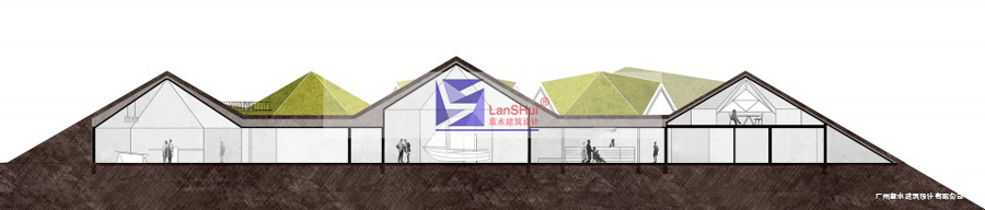 新老建筑為大地的景觀所環(huán)繞,也被滿草的屋頂所覆蓋。事實上,屋頂增加該地區(qū)的生態(tài)價值,為其營造了可以稱之為大地藝術(shù)的雕塑,同時也使自身在環(huán)境中凸現(xiàn)出來。起伏的屋面上是小山一樣的景觀,其間鋪有小路,小路的盡端有一座可以瞭望景色的平臺。