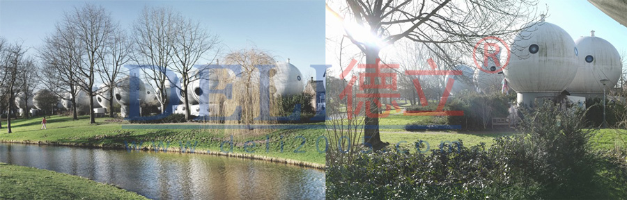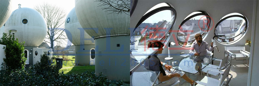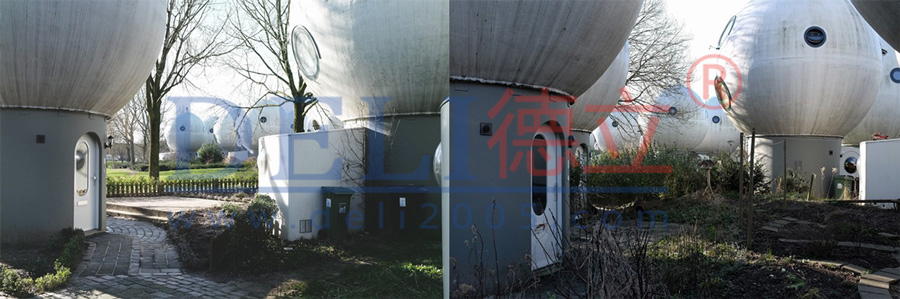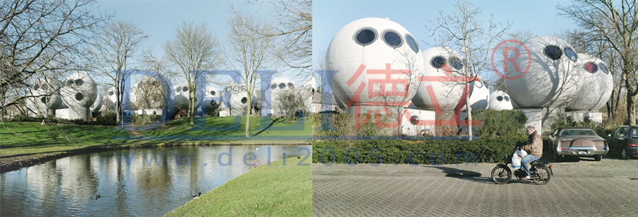 在荷蘭古香古色的Den Bosch小鎮(zhèn),有一片名為Bolwoning的奇怪建筑群。Bolwoning坐落在該地區(qū)傳統的磚房建筑與一條蜿蜒的運河之間,由一顆顆蘑菇樣的圓球建筑組成,圓球建筑的上面還分布了一些圓形的窗以及爬藤植物,好似一片失落依舊的外星文明遺跡。
