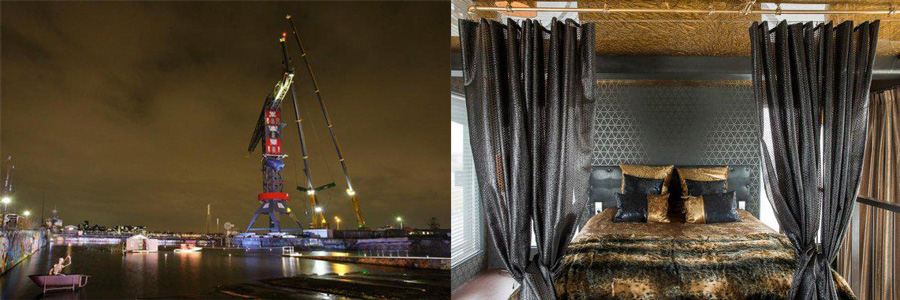 其中一間35平方米大的套房的位置正是原本塔吊的機(jī)房所在之處,這里仍然保留了它的工業(yè)氛圍,而另外兩個(gè)套房中提供的玻璃幕墻則可以令人體驗(yàn)到非凡的海港視角。塔吊中的電視演播廳則為高收視率的電視節(jié)目和音樂推廣服務(wù),當(dāng)然客人也可以在這里開派對(duì)。在這家酒店的套房中住一晚的花費(fèi)大概是500美元,在我(原文作者)看來對(duì)于一個(gè)千載難逢的體驗(yàn)來說這個(gè)價(jià)錢還不賴。