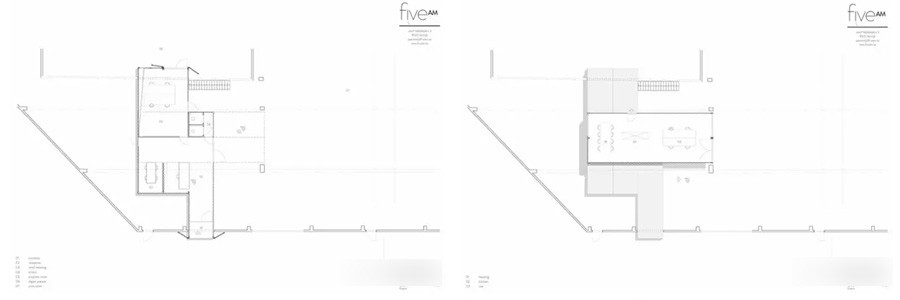 在集裝箱的內(nèi)部空間,F(xiàn)ive AM 選擇了一種清新而富有吸引力的風(fēng)格,并為兩個客戶作出差異化設(shè)計。