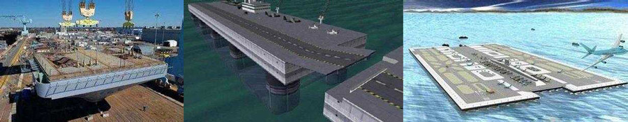 但常言道“墻里開花墻外香”,雖然人工浮島基地并沒能被美國投入實(shí)際建造和運(yùn)用,其概念卻為中國所看中。2015年7月,中國冀東發(fā)展集團(tuán)在今年7月底的國防科學(xué)成就展會(huì)上首次展出了中國自主研發(fā)的首個(gè)桁架式超大型海上平臺(tái)。該平臺(tái)由多個(gè)小型浮體模塊在海上重組、拼接而成,根據(jù)參展公司的介紹可用于旅游開發(fā)、浮式碼頭、軍事基地甚至海上機(jī)場等等。據(jù)稱,用于組建桁架式超大型海上平臺(tái)的模塊的標(biāo)準(zhǔn)面積分90米×300米、120米×600米和120米×900米三種規(guī)格,平臺(tái)上有動(dòng)力裝置,可以以18千米/時(shí)的時(shí)速自主航行。