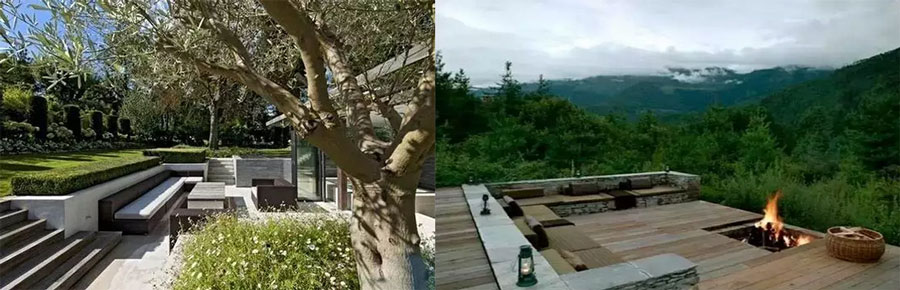 不同于場(chǎng)地平攤的庭院,這種下沉的空間的圍合感更強(qiáng),坐在里面無(wú)形中給人內(nèi)心增加了幾分安全感。另外,人的視線是和地面或者水面平齊的,給人帶來(lái)不同尋常的新鮮體驗(yàn)感。這種下沉式的庭院空間,在現(xiàn)代設(shè)計(jì)中越來(lái)越流行,尤其是一些高端的別墅豪宅中更是多見(jiàn)。