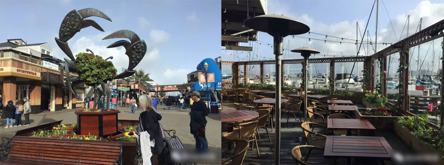 漁人碼頭過去曾是意大利漁夫的停泊碼頭,如今已是舊金山最熱門的去處,終年熱鬧非凡。杰弗遜街和泰勒街交匯處的巨蟹標記是漁人碼頭的象征。各國觀光客來到舊金山都要來這里享受一頓新鮮美味的海產(chǎn)宴。碼頭附近還有海洋公園博物館等。漁人碼頭的標志是一個畫有大螃蟹的圓形廣告牌,找到了“大螃蟹”,就到了漁人碼頭,也就到了舊金山品嘗海鮮的首選地點。39號漁人碼頭是濱水休閑商業(yè)中心,也是著名的旅游景區(qū),這里不僅設有各式海鮮餐廳、特色商業(yè)街,還有游艇碼頭,是各地漁人碼頭的代表作,是濱水休閑度假景區(qū)的樣板。