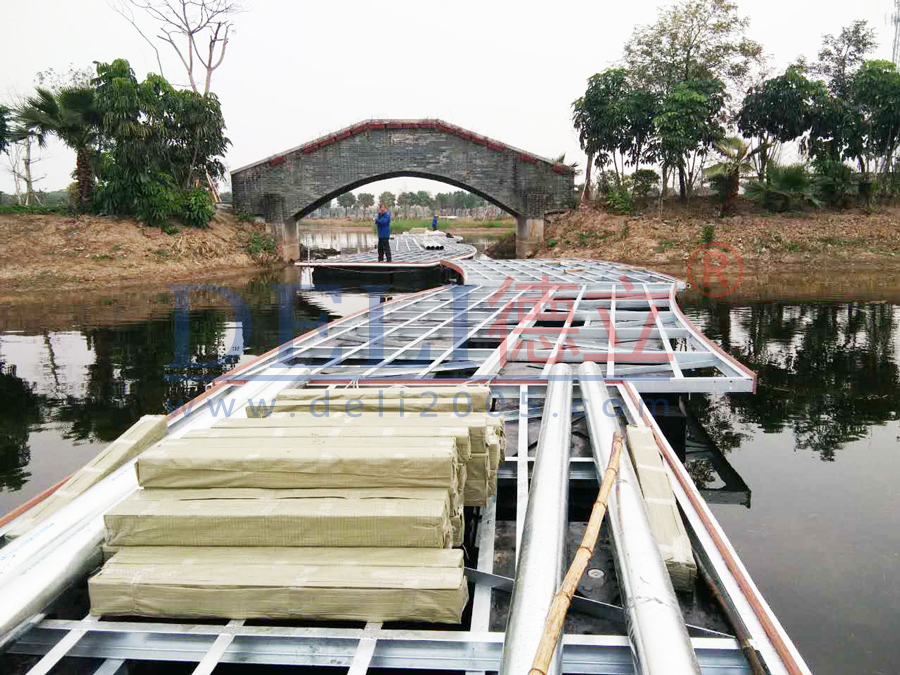 番禺蓮花水鄉(xiāng)景觀浮橋施工進程中