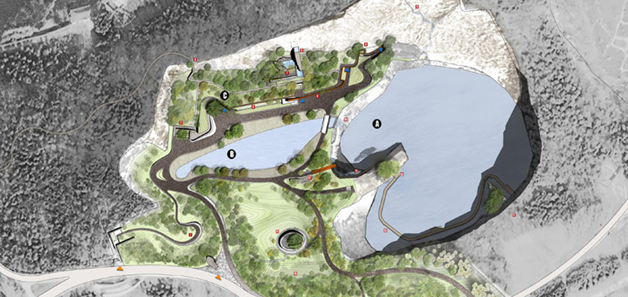 這樣一個(gè)項(xiàng)目中,設(shè)計(jì)師面臨很多挑戰(zhàn)。第一個(gè)挑戰(zhàn)是修復(fù)嚴(yán)重退化的生態(tài)環(huán)境。場(chǎng)地內(nèi)植被稀少,物種貧乏,巖石風(fēng)化、水土流失嚴(yán)重。第二個(gè)挑戰(zhàn)是充分挖掘和有效利用礦坑遺址的景觀(guān)價(jià)值。因此,如何重新建立礦坑和人們之間的恰當(dāng)聯(lián)系成為設(shè)計(jì)師需要思考的問(wèn)題。