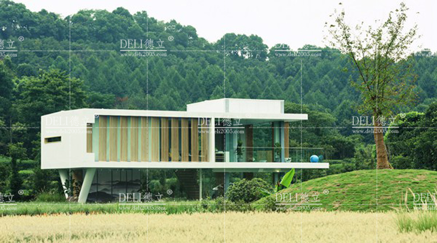 概念屋采用了大面積透明玻璃,只要打開窗簾,西湖龍井茶園的怡人風(fēng)光盡收眼底。