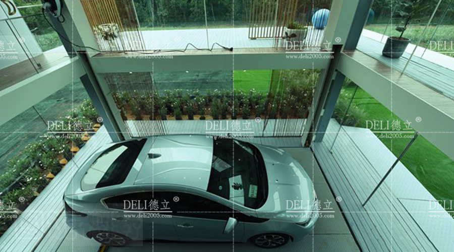 在可升降的車庫的二樓還安裝有能為新能源汽車進(jìn)行充電的充電樁。