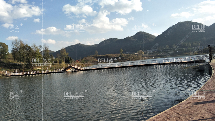 近日,由我司總承包的貴州省六盤水市明硐湖景觀浮橋正式通過驗(yàn)收并移交甲方物業(yè)公司。該景觀浮橋位于水城縣雙水新區(qū)東部國際城,水城縣位于貴州省西部,地處中國涼都六盤水市;氣候溫和,冬無嚴(yán)寒,夏無酷暑,水城境內(nèi)山巒起伏,自然景觀較多。明硐湖景觀浮橋?qū)儆趩慰赘」皹颍煨蛢?yōu)美。