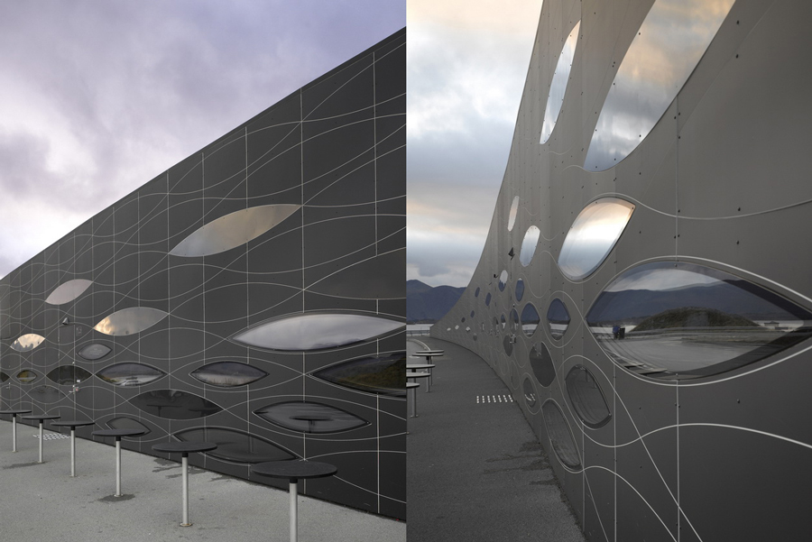 在項(xiàng)目的概念與工程里,Eldhusøya 描畫出了整體的交通基礎(chǔ)設(shè)施和對(duì)周邊自然景觀的適應(yīng)性,并借鑒了海運(yùn)與近海工業(yè)的材料與預(yù)制技術(shù)。