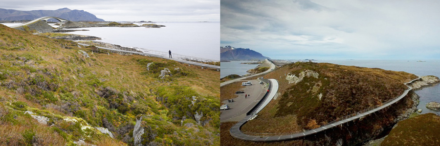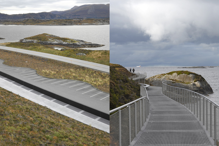 這個(gè)小島坐落在標(biāo)志性的大西洋海岸線上最著名的航線上,一直是眾多游客眼中的旅游勝地;它激動(dòng)人心的海洋景觀與臨近的曲線橋梁讓這里成為了反應(yīng)自然與人工之間關(guān)系的目的地。2007年挪威國(guó)家游客道路部門發(fā)起了一次建筑與景觀競(jìng)賽,該競(jìng)賽是關(guān)于升級(jí)場(chǎng)地,里面包括了一個(gè)景觀平臺(tái),一棟小型的服務(wù)建筑和一處大型的停車空間。