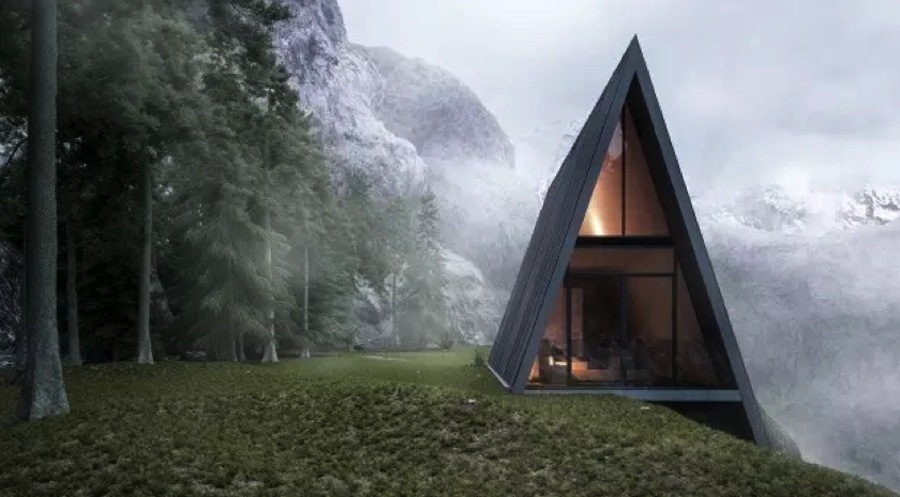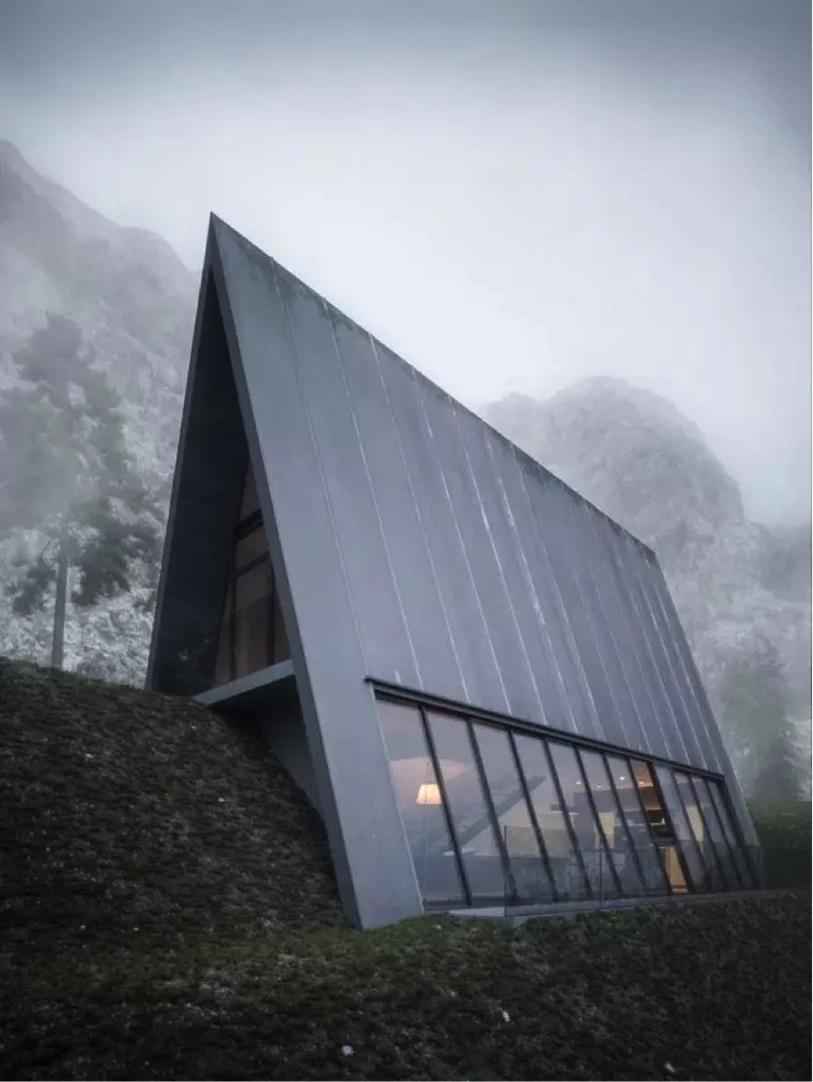 這座建造在半山腰名為“Triangle Cliff House”的外形三角狀尖頂建筑是來(lái)自德國(guó)漢堡的設(shè)計(jì)團(tuán)隊(duì)Lichtect(直譯:真實(shí)的光)的3D建模作品,他們立志于建造完美的模型以助于以后在現(xiàn)實(shí)世界的建造,并曾多次獲得iF communication design award 和 2003 animago Award。