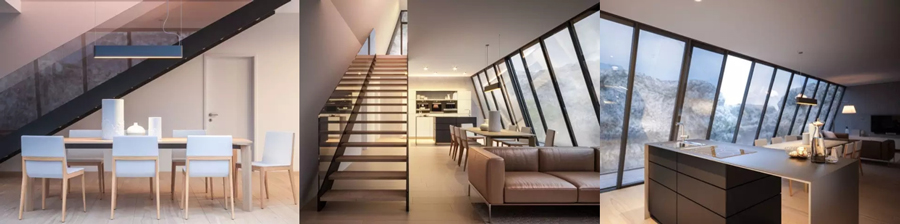 在底層并沒(méi)有建造分割的墻面,而是讓客廳’餐廳’廚房三合一的方式留下來(lái)。