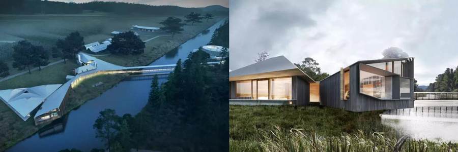Marchwiel度假山莊位于塔斯馬尼亞州,它結(jié)合了歷史悠久的石頭基地結(jié)構(gòu),占地約364萬平方米,打破常規(guī)的建筑格局,騰空與河流上面,仿佛一座橋。