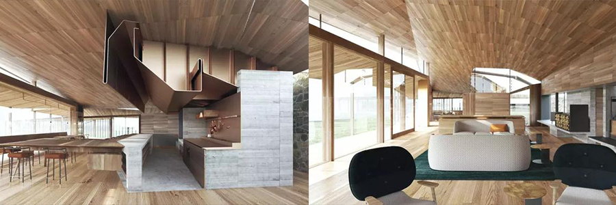 度假山莊共有五間正式套房和另外三間“Shearers Quarters”小屋,套房位于翻新的石頭宅基地和新的住宿亭內(nèi)。室內(nèi)實木結(jié)構(gòu)的天花和地板,運用一樣的色調(diào)和深色的大理石形成對比,增加了時尚感。瀑布理療區(qū)的天然溫泉,讓人放松全身,感受自然的魅力。