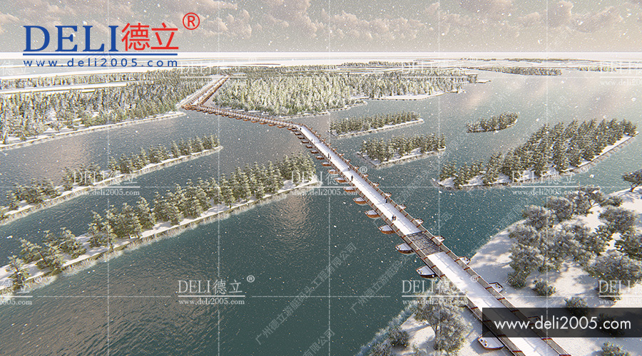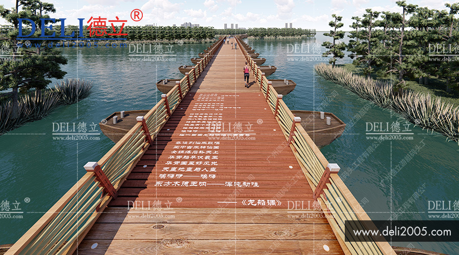 高坪通往印象嘉陵江上中壩濕地公園有兩座浮橋。這兩座浮橋均由德立設計!