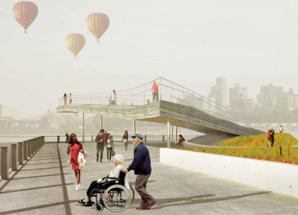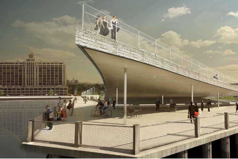BIG在設(shè)計時就說明這種公共平臺上下兩方的平等開放是一種城市居民的需求,滿足民用。同時,這個平臺的有機自由曲線也是吸引人們的一個亮點!
