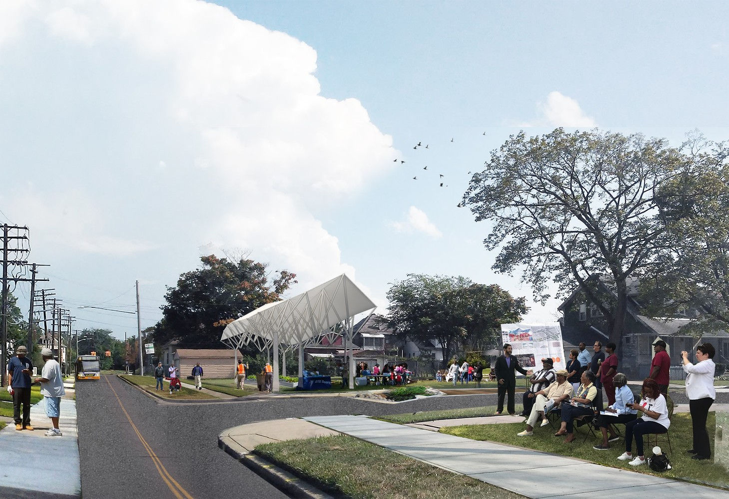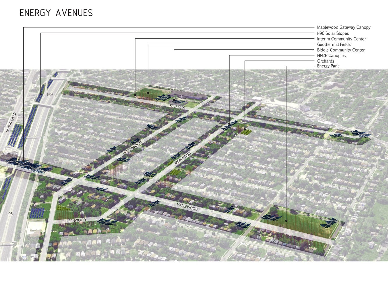一個由社區(qū)推動的社區(qū)規(guī)劃方案,將美國底特律的廢棄土地重新規(guī)劃為集體基礎(chǔ)設(shè)施的空間,包括食物、能源和市民參與。這個設(shè)計方案能在當(dāng)?shù)?,讓鄰里通過微型基礎(chǔ)設(shè)施,推動能源自動化,評委組評論該方案為“由社區(qū)發(fā)起的方案”。