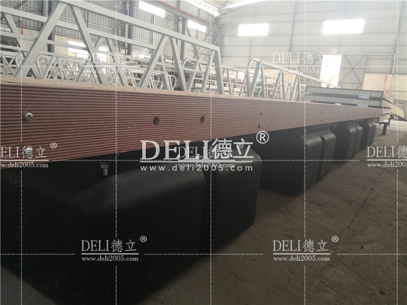 這座浮橋通過了BV認證。它采用木塑面板,所有的鋼材都是鍍鋅的,價格便宜,使用壽命長。