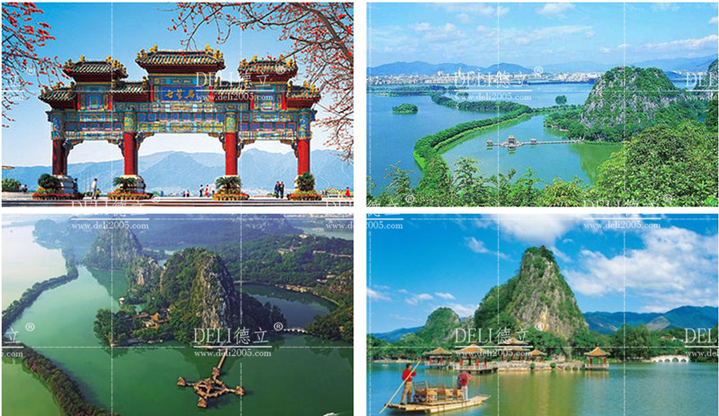 D:利用石室?guī)r、天柱巖、蟾蜍巖、仙掌巖、象崗以及玉屏巖閬風(fēng)巖犀牛崗的西南側(cè)來(lái)營(yíng)造山體燈光效果。